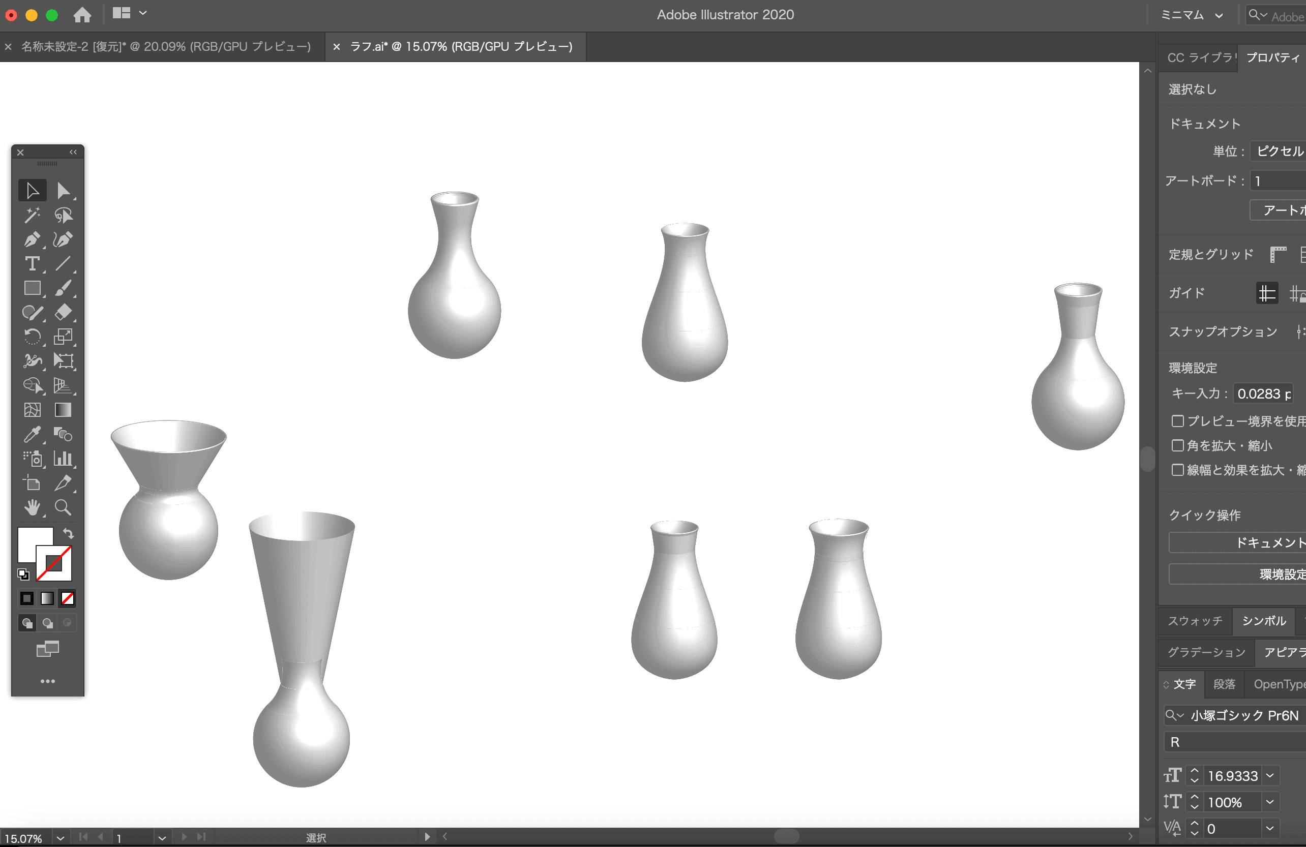 Illustratorの3D 回転体機能を用いてラフな試作を行いました。実際の手触りや回しやすさを考慮しながら形を検討しました。